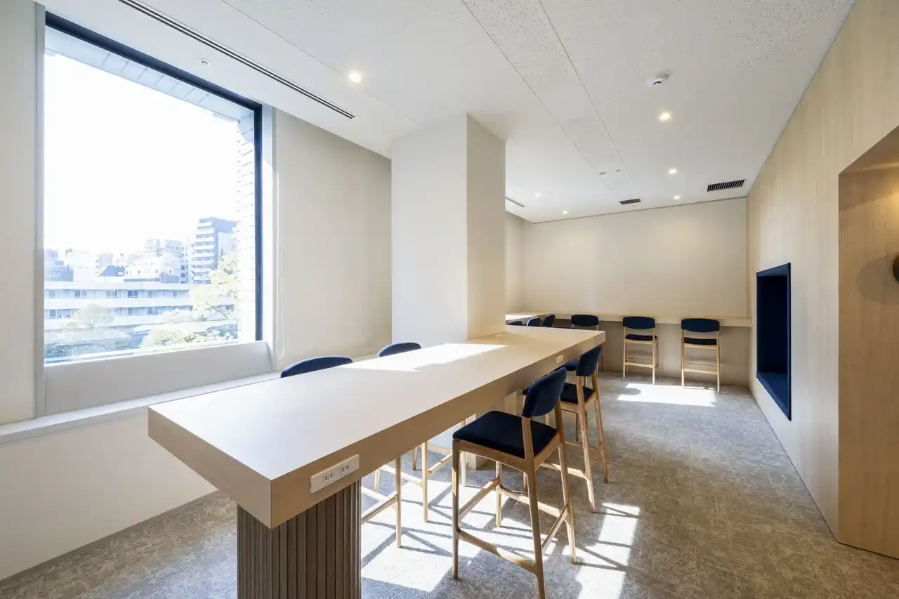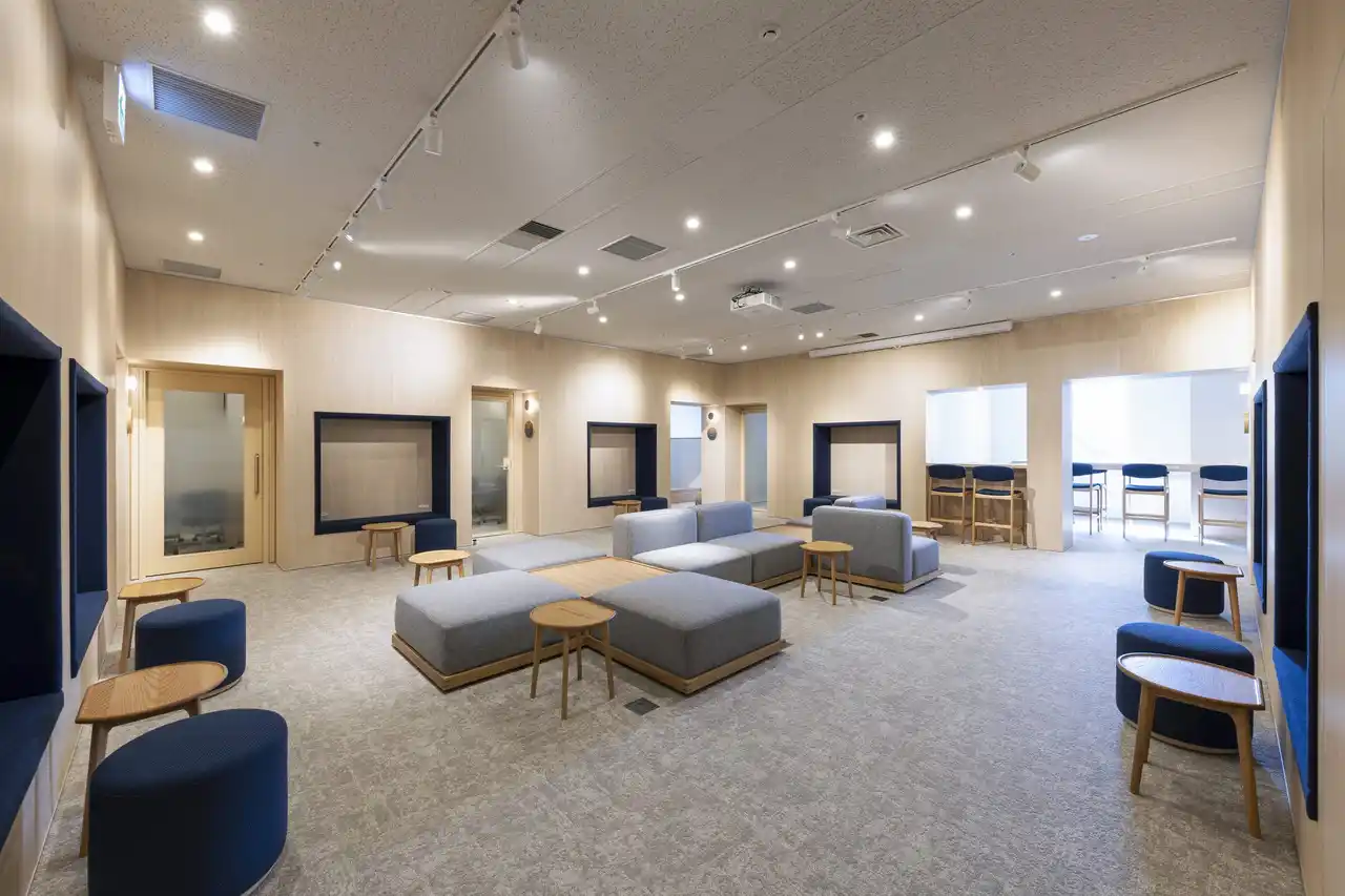 | 約264平方メートル (約80坪)の空間に、気分や用途に合わせて気軽に使えるスペースと会議室を一体化したラウンジを新設しました。ビルに入居する企業のワーカーなら誰でも利用できるスペースです。 | ||||||||||||||||