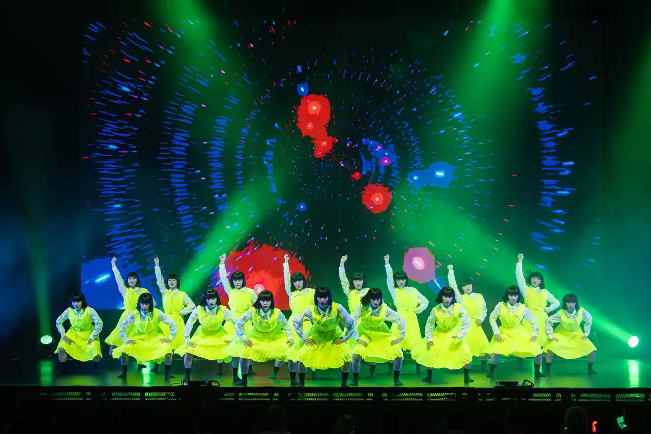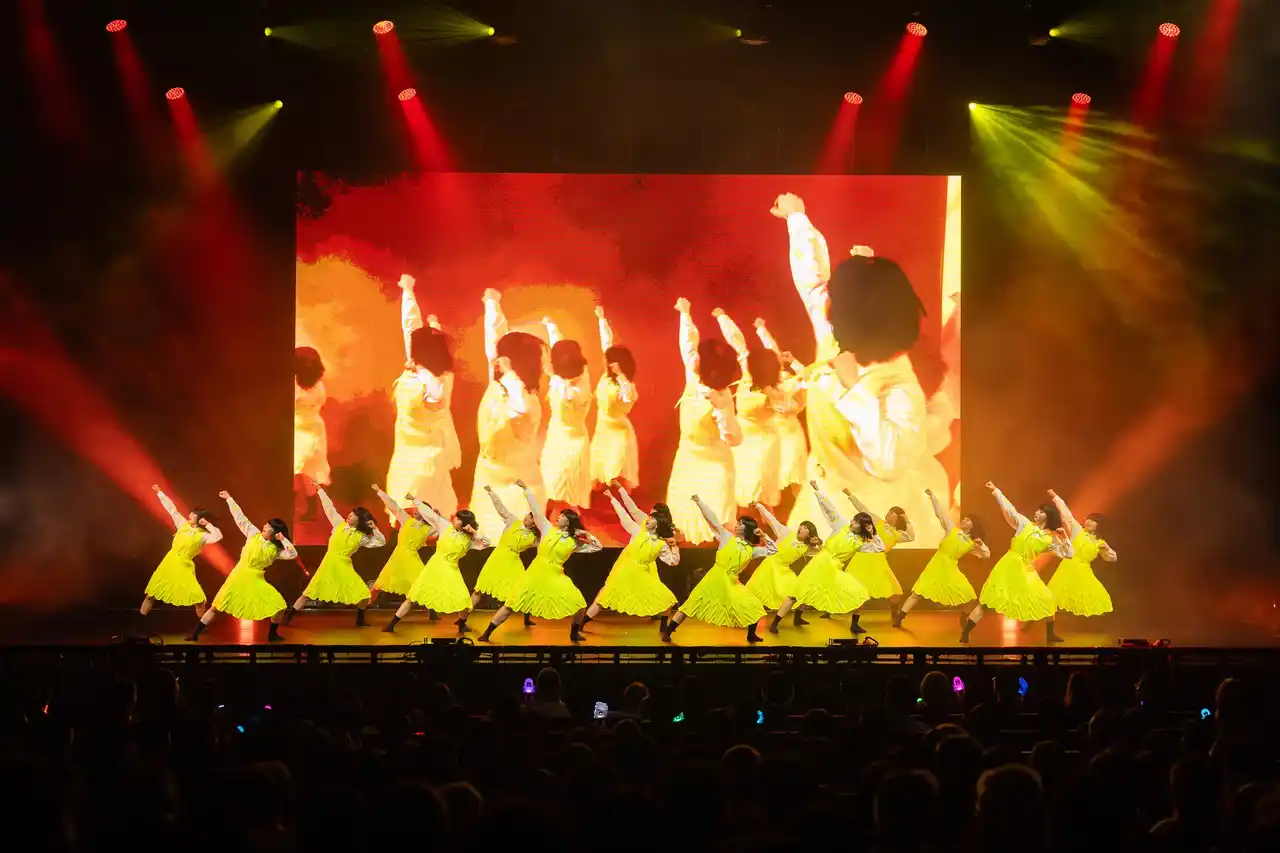 衣装は、象徴的な制服スタイルはそのままに、立体変形プリーツを取り入れたデザインが特徴。軽量な素材を採用し、スカートが美しく広がる演出効果を生んでいます。メンバーのみなさまからは「細かくプリーツが入っており、17人で踊ると舞台が一気に華やかになる」と高い評価をいただきました。 |