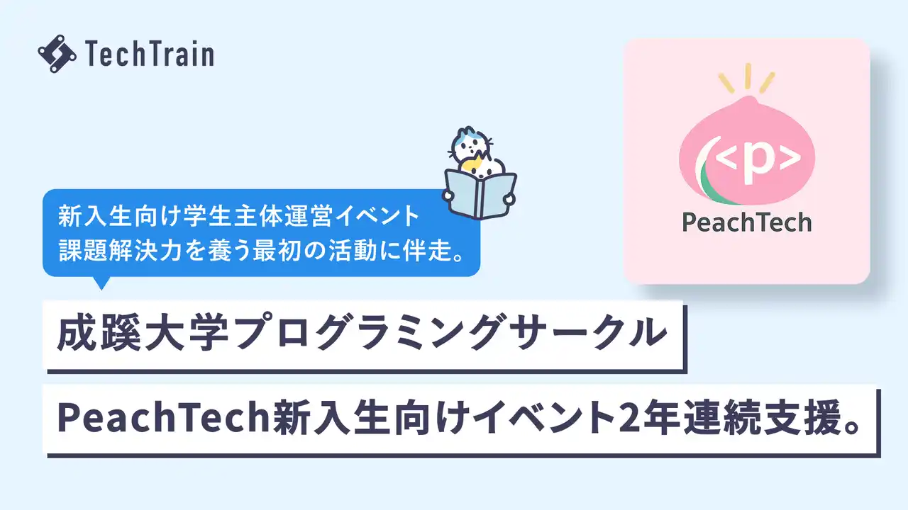 「テクノロジーを支える、全ての人のターミナルに。」を掲げるTechTrain(株式会社TechBowl 本社:東京都千代田区、代表取締役社長:小澤 政生、以下「TechTrain」)は、成蹊大学プログラミングサークル「PeachTech」の新入生向けイベント「PeachTech Welcome会」において、ディップ株式会社様のご協力のもと会場を提供し、入学直後の1年生がアイディアソンに挑戦する機会を支援しました。本取り組みは昨年に引き続き2年連続での協力となります。 |
