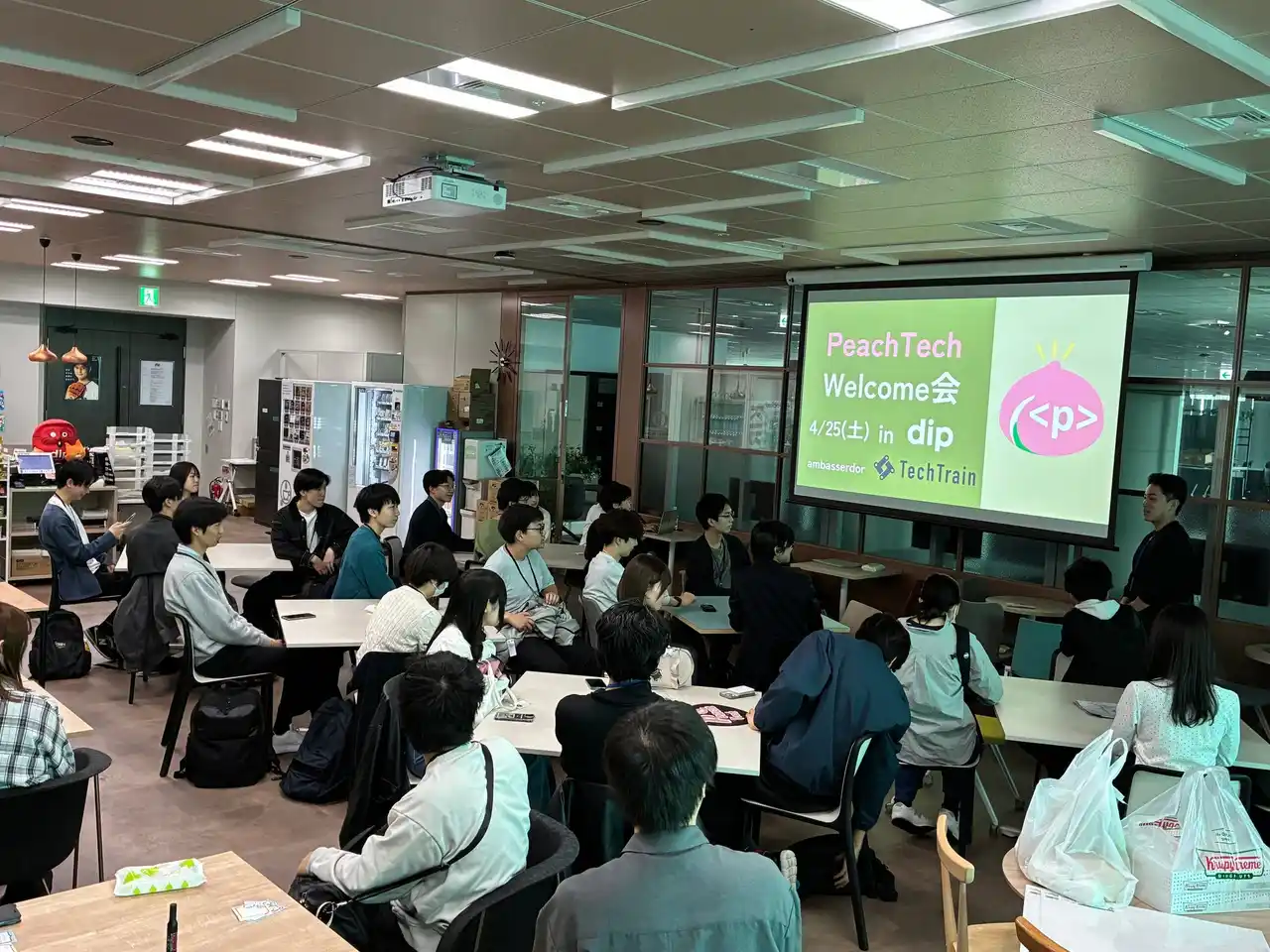 本イベントにおいて、TechTrainは、ディップ株式会社様のご協力のもと、会場を提供のサポートをいたしました。また、アイディアソンで特に優れた視点・発想を持つチームにTechTrain賞を授与し、入学直後から課題解決に向き合う学生たちの挑戦を応援。さらに、懇親会では、アイディアソンで疲れた脳を癒すお菓子の協賛も実施いたしました。 |
