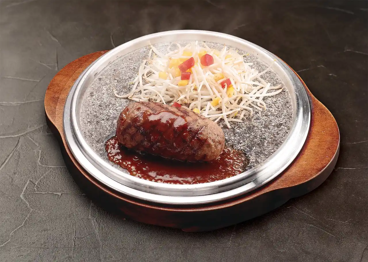 独自のレシピで俵型に形成し、石盤にのせて焼き上げるビーフ100%のハンバーグとステーキが自慢のレストラン。このほか、チキングリル、海老フライ、各種アペタイザーやサラダなど、豊富なメニューを取り揃え、学生さんからご家族、ご年配の方まで、幅広いお客様にカジュアルにお楽しみいただいています。 看板メニューは、柔らかく、とろけるようにスーッと食べられてしまう、今までにない食感が魅力の俵型「石焼きハンバーグ」。 チャコールで外側に焼き目がいれられたハンバーグを熱した石盤にのせ、お客様の目の前でカット。しっかり焼き上げて召し上がっていただきます。ボリューム感あるハンバーグの見た目のインパクト、肉の焼ける音、ソースの香りが食欲をそそります。表面はカリカリ、中はふゎっとしたやわらかい独特な食感と、ジューシーなお肉の旨味を存分にお楽しみいただける自慢の一品です。 |