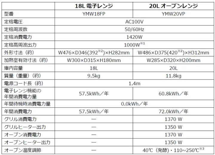 こうした背景を踏まえ、毎日の調理に便利な、時短あたため・センサー自動あたため機能を搭載し、3年保証で安心してお使いいただける18L電子レンジ・20Lオーブンレンジを開発しました。 |