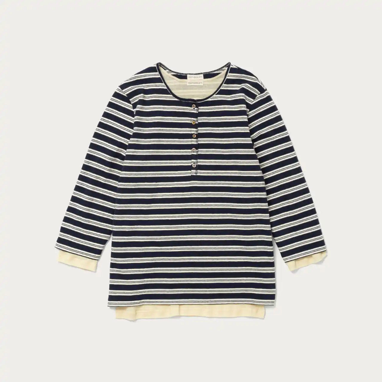 「ボーダーレス」「タイムレス」「リラックス」を掲げるブランド<PROTAGONISTA(プロタゴニスタ)>。ブランドで展開されているレイヤードトップスをベースに、ボーダートップスの生地を別注しました。袖丈は7分袖へと変更し、ルーズなサイジングをややコンパクトに調整したことで、程よく力の抜けたバランスに。レイヤードはもちろん、単品使いもでき、着こなしの幅が広がる一着です。 |
