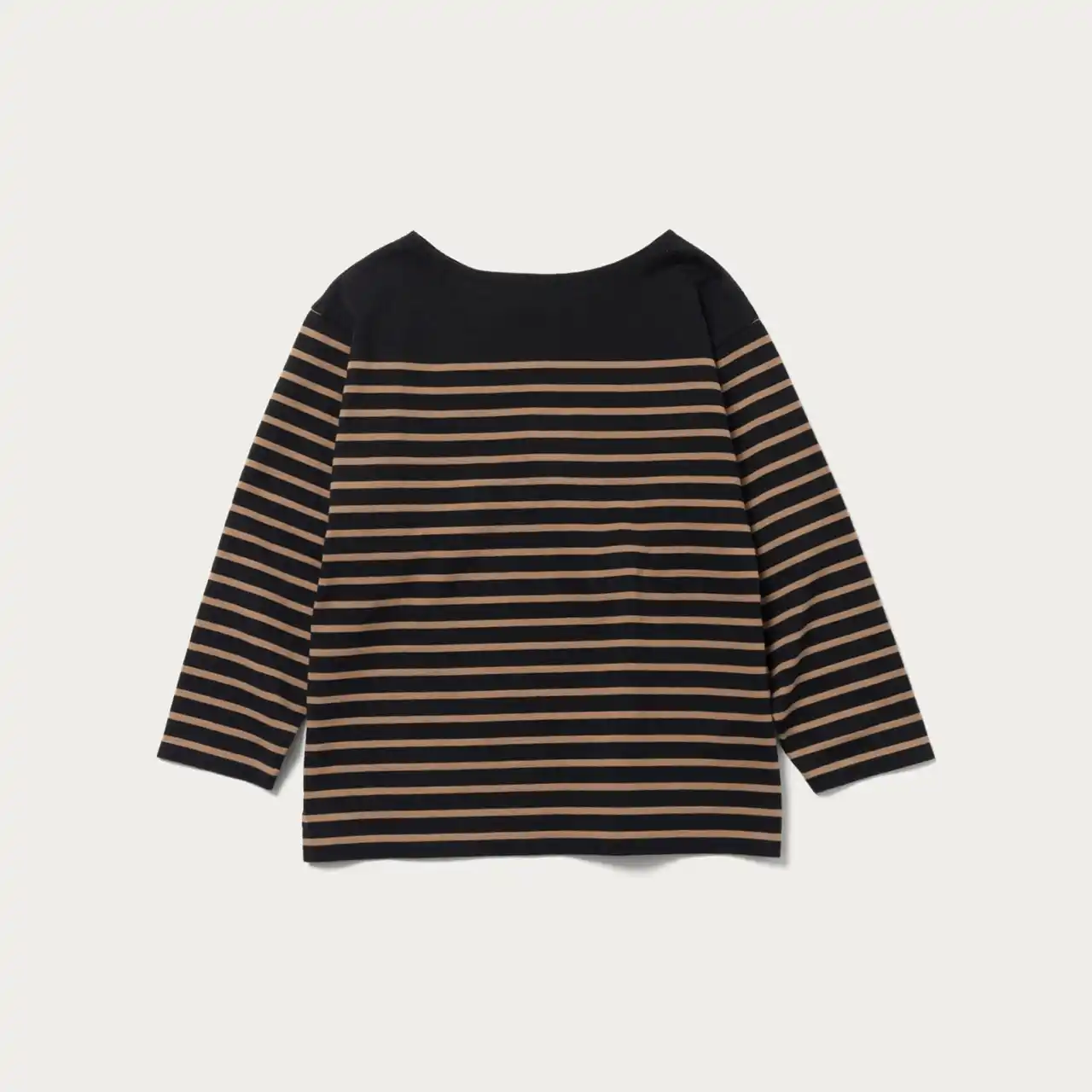 ワークの意匠を持ちながらモードな顔を見せ、タフさと上品さを併せ持つブランド<TICCA(ティッカ)>。ブランドで展開されていたバスクシャツをベースに、ボートネックのフロントとレースアップデザインのバックを組み合わせたボーダーTシャツ。別注したボーダー生地を使用し、袖丈は7分袖へと変更しました。前後で異なる表情を楽しめる2WAY仕様のデザインで、レースアップが大人のカジュアルなスタイリングに程よい抜け感を与える一着です。 |