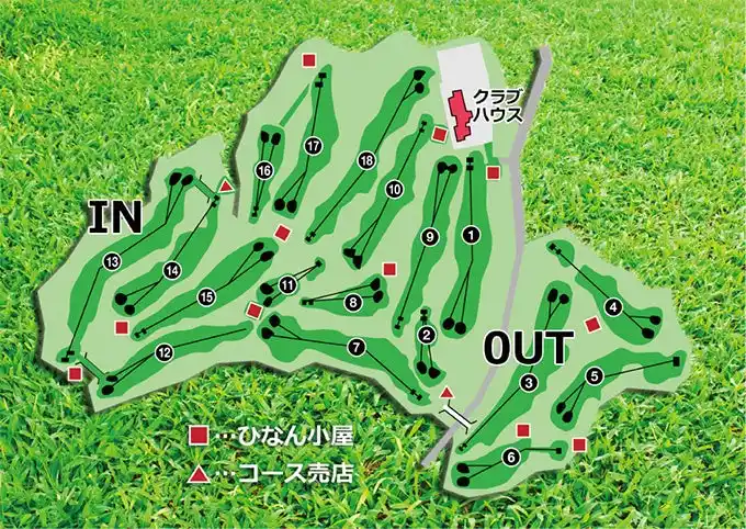 各ホールにはそれぞれ個性があり、誰でもその技量に応じて楽しめるコースになっております。アウトコースはグリーンまわりがバンカーで巧みにガードされており、ショットの正確さが要求されます。インコースはフラットで広く距離も長いので、中盤のホールをうまくまとめるのがスコアメークのポイントとなります。 |
