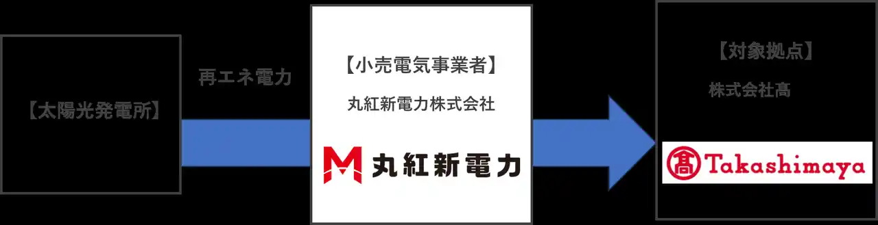 | 本取り組みは、丸紅新電力が複数の太陽光発電所で発電された再エネ電力をとりまとめ、オフサイトコーポレートPPAを通じて日本橋高島屋S.C.本館へ供給するものです。再エネ電力の供給開始後は、日本橋高島屋S.C.本館で使用する電力の一部を再エネへ切り替えることで、事業活動に伴う環境負荷の低減を図ります。 | |||