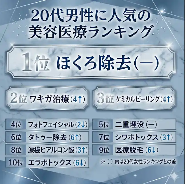人気施術ランキングから見る20代男性の美容医療トレンド |