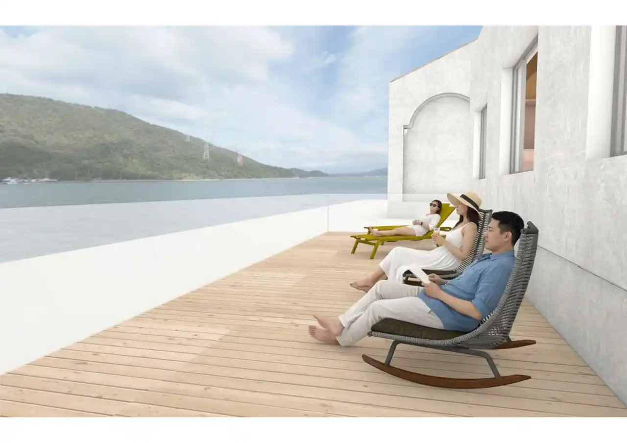 ▲ 完成イメージ(温浴海辺のテラスデッキ) (C)ザウェルネスゲート高浜共同事業体 |