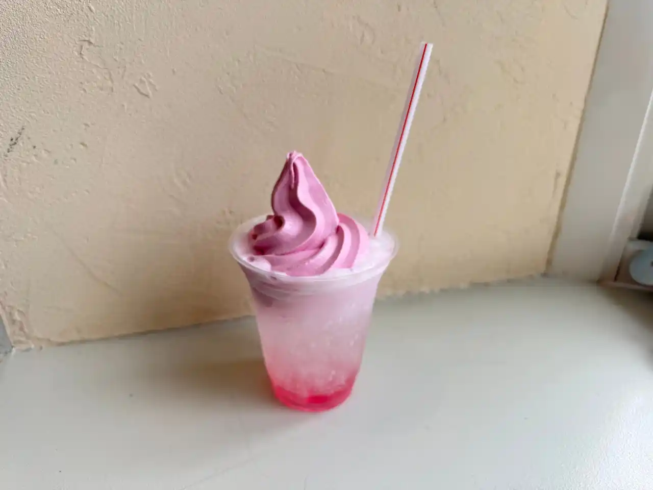 1.商品内容 ローズソーダに鮮やかなピンク色のバラソフトをのせたバラを満喫できるフロートです。 |