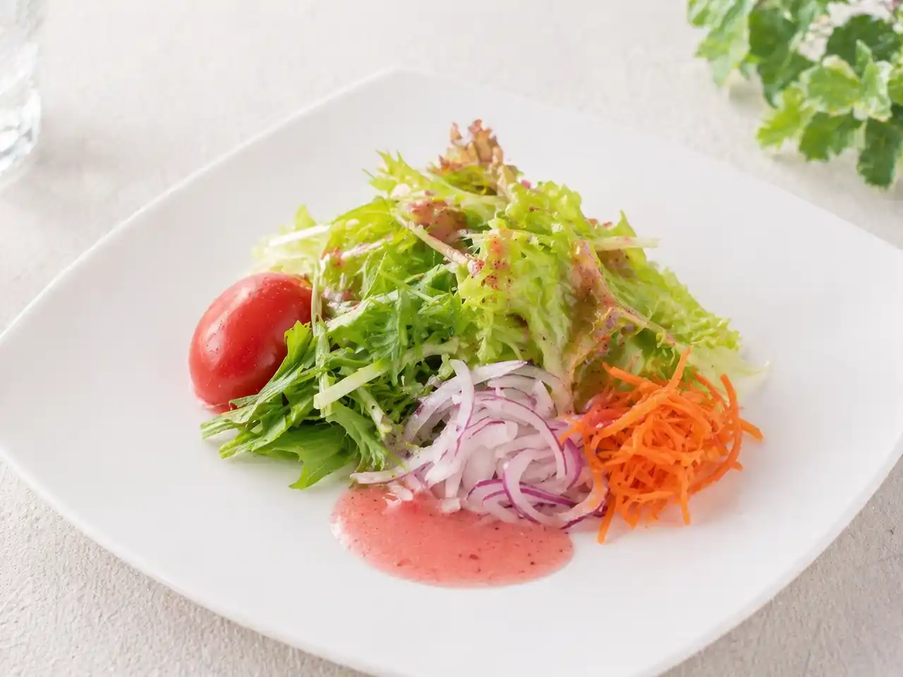いちご由来のやさしい色合いが、サラダや料理を華やかに演出します。 |