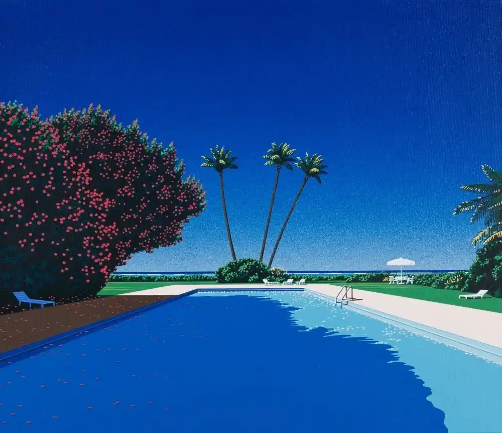 大滝詠一の『A LONG VACATION』に代表されるトロピカルでクリアな風景で、レコード・CDジャケット界に独自の地位を築き上げた画家、永井博。 |