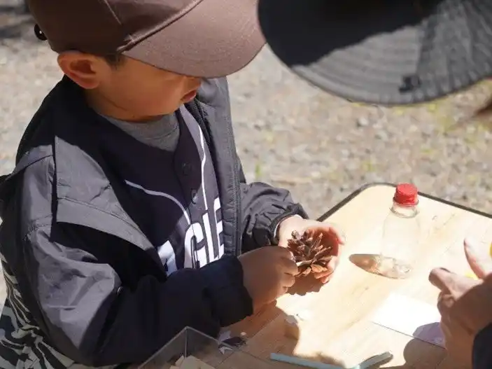 本イベントでは、特定NPO法人 宮城県森林インストラクター協会(事務局:宮城県宮城郡、会長:渡邉淳)の協力のもと、子どもたちに自然の大切さや魅力を実感してもらい、環境問題への関心を育むきっかけにしてもらえるよう、自然観察や間伐材を使ったネイチャークラフト体験を行いました。さらに参加者には、環境配慮の実践と意識定着を目指して制作したオリジナルエコバッグと、自然をより身近に感じてもらいたいという思いから選定した小学生向けの科学学習まんがを配布しました。 |