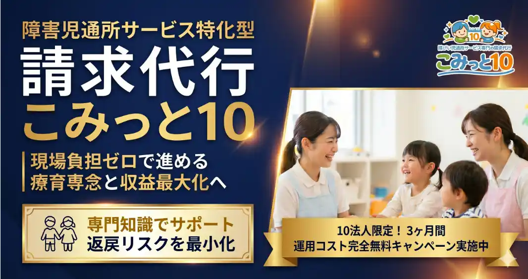 | 放課後等デイサービス・児童発達支援ブランド「ウィズ・ユー」を展開する有信アクロス株式会社(本社:大阪府吹田市、代表取締役:原田 健市、以下「当社」)は、2026年5月より、障がい児通所サービスに特化した請求代行新事業「こみっと10(コミットテン)」を開始いたします。 | |||||||