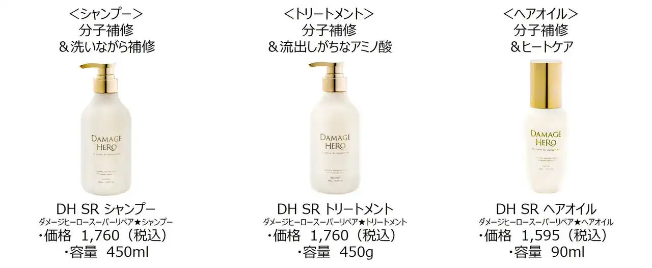 現在、楽天市場およびQoo10ほか、全国のドン・キホーテやドラッグストアなど約3,000店舗にて販売しております。ダメージケアを諦めていた方にこそ、「DAMAGE HERO」の補修力をぜひお手に取ってご体感ください。 |