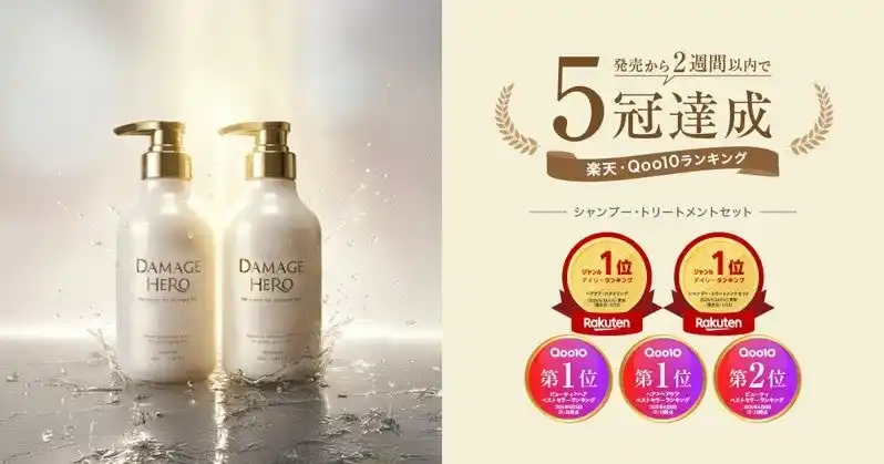 株式会社MD(本社所在地:東京都港区、代表:石井賢介)が展開する、ダメージ補修に特化したヘアケアブランド「DAMAGE HERO(ダメージヒーロー)」(2026年4月より発売開始※1)が、国内大手ECサイト「Qoo10」と「楽天市場」において、発売わずか2週間でランキング第1位を獲得しました。 |