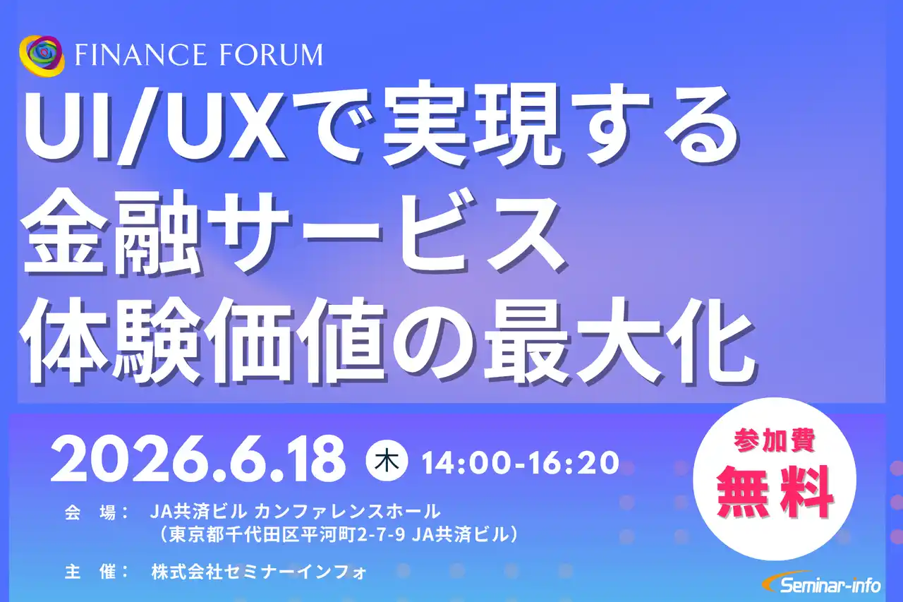 株式会社セミナーインフォ(本社:東京都中央区 代表:小西 亘)は、2026年6月18日(木)にFINANCE FORUM「UI/UXで実現する金融サービス体験価値の最大化」を開催いたします。 |