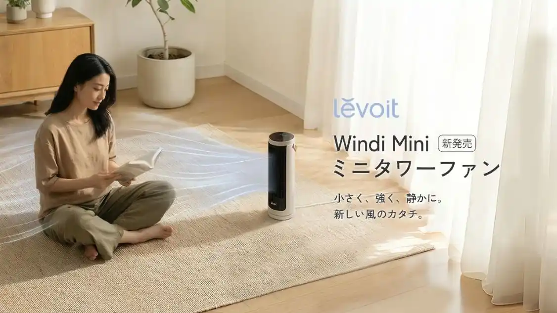 アメリカ発の小型家電メーカーVeSync(ウィーシンク)の日本法人、Vesync Japan株式会社(本社:東京都千代田区、以下VeSync)はタワーファンの新たな可能性として「必要な場所に“持ち運べる”コンパクトタワーファン」というコンセプトを採用した新製品 「Levoit Windi Mini ミニタワーファン」 を、2026年4月28日(火)より発売いたします。 |