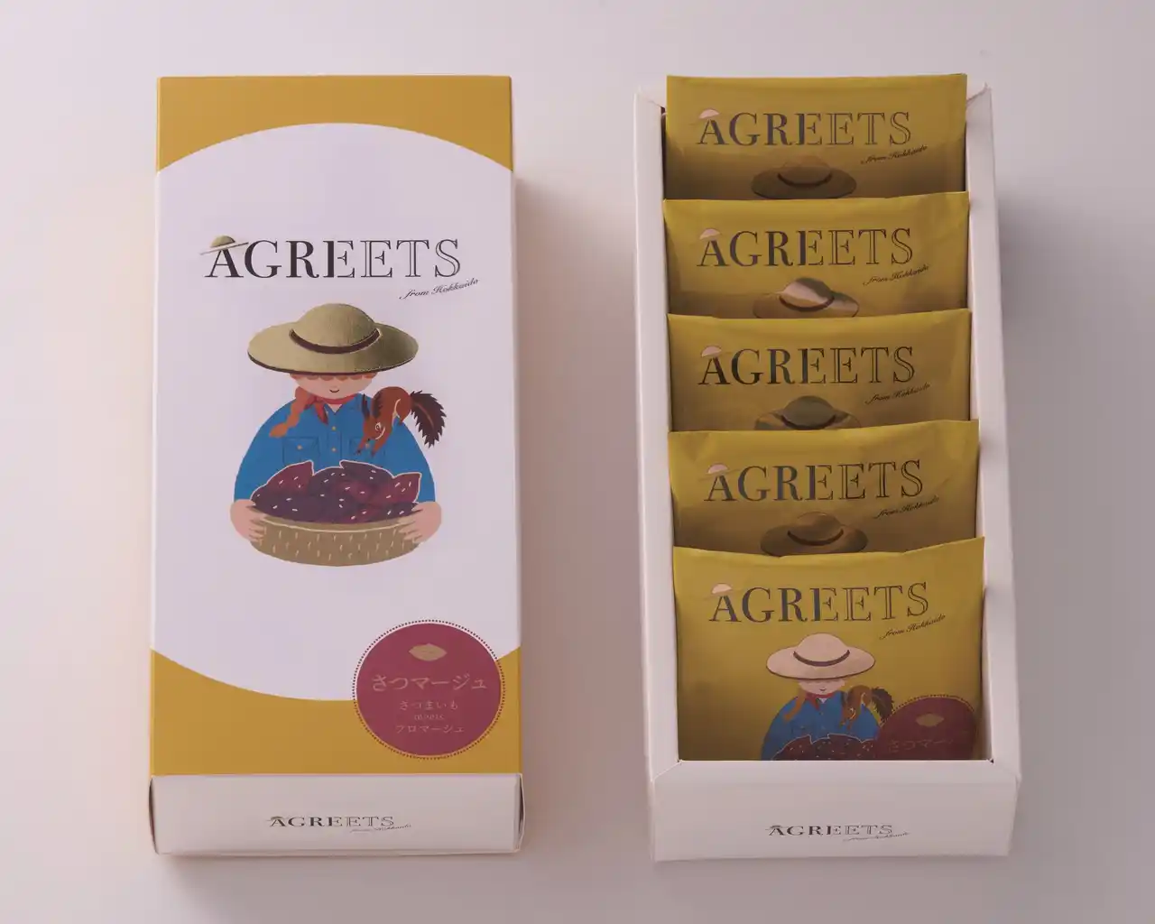 石屋製菓株式会社(本社:札幌市西区 代表取締役社長:石水 創)は、北海道の素材を使用したスイーツをお届けするブランド「AGREETS(アグリーツ)」から、第2弾商品「さつマージュ」を2026年4月29日(水)より販売いたします。 |