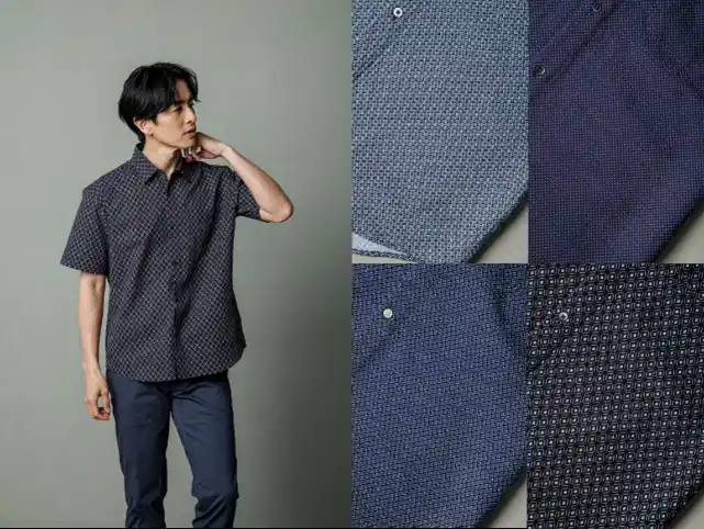 通気性と吸湿速乾性に優れたサッカー素材を使用し、真夏でもさらりと快適な着心地を実現した一着です。花菱や沙綾形、七宝、胡麻といった縁起の良い伝統的な小紋柄をモダンにプリントし、日常の装いにさりげない和のアクセントを添えます。 |