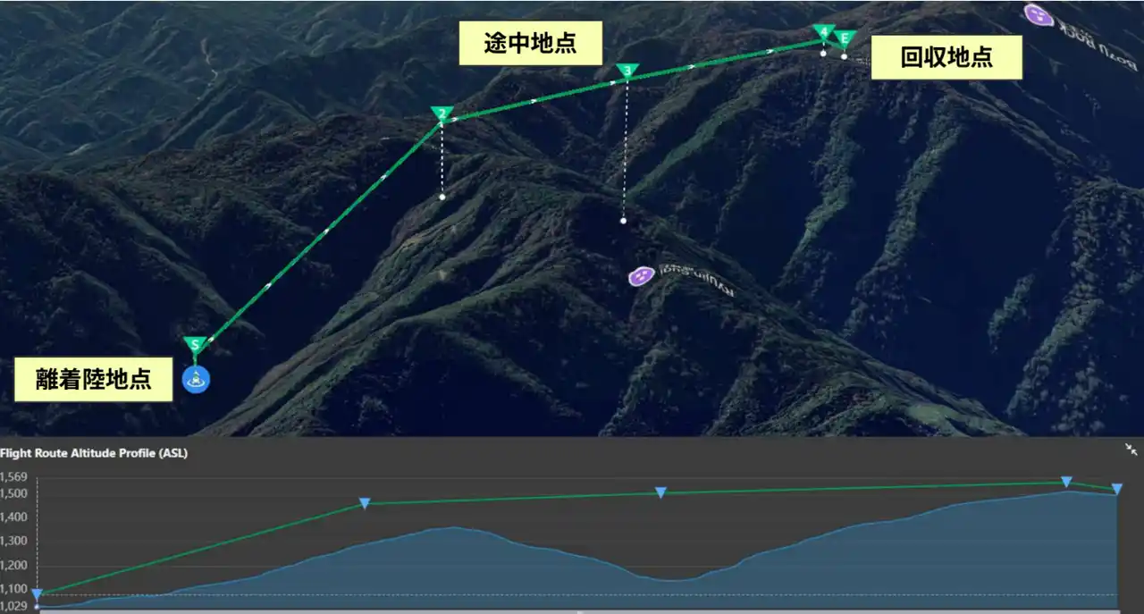 気象条件:風速は平均6m/s、瞬間的に最大12m/sに達する山風が吹く環境下でしたが、安定した飛行を維持しました。 |