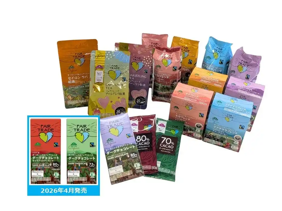 | 5月第2土曜日(2026年5月9日)は世界フェアトレード・デー。5月の1か月間をフェアトレード月間と位置づけ、全国各地の店頭でフェアトレード商品の販促や啓発イベントが実施され「商品購入/イベント参加/SNS投稿」等のアクション数を合計し、1アクション=1円を開発途上国の生産者へ寄付します。6年目となる今年は、全国の小売店・飲食店・食品メーカー・自治体・教育機関・市民団体など約200社と連携し、過去最大の300万アクション(=300万円の寄付)を目指します。本キャンペーンに合わせて、イオンや小川珈琲、DEAN & DELUCAなどの店舗で期間限定の商品や新メニュー・新商品を発売します。また、最新となる2025年の国内フェアトレード市場規模を発表しました。 | ||||||||||||||