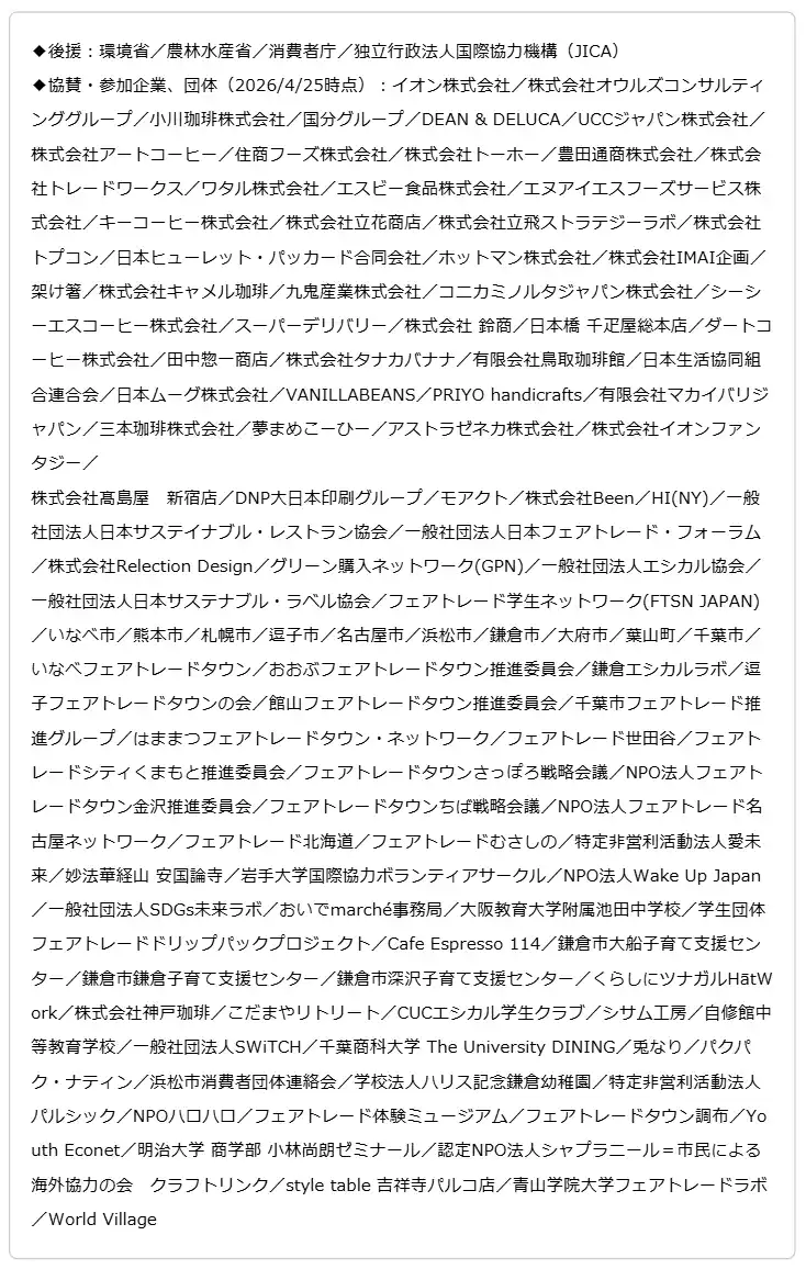| フェアトレード ミリオンアクションキャンペーン2026参加企業の取り組み | ||||||||||||||