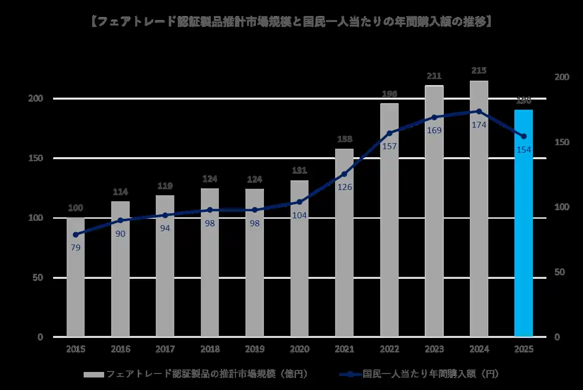 | 一方で、フェアトレード認証製品の市場規模は約190億円を維持しており、安定した需要基盤の存在が改めて確認されました。 | ||||||||||||||