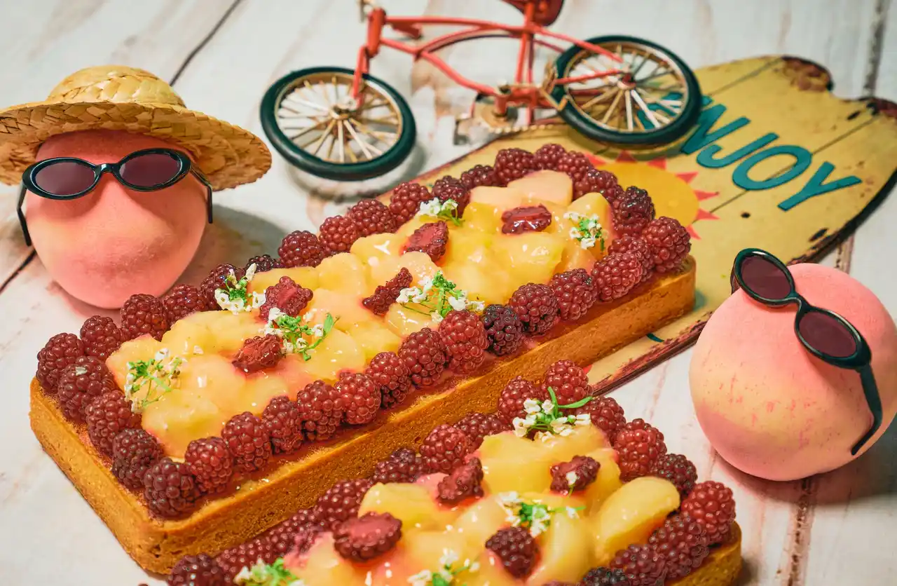 桃のやさしい甘みと、ブラックベリーのほどよい酸味を重ねたタルト。フレッシュな果実とタルト生地の香ばしさとがコントラストし、すっきりとした余韻をもたらします。 |