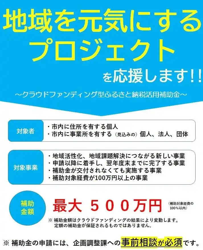 | ※ 補助金額はクラウドファンディングの結果により変動します。 | |||