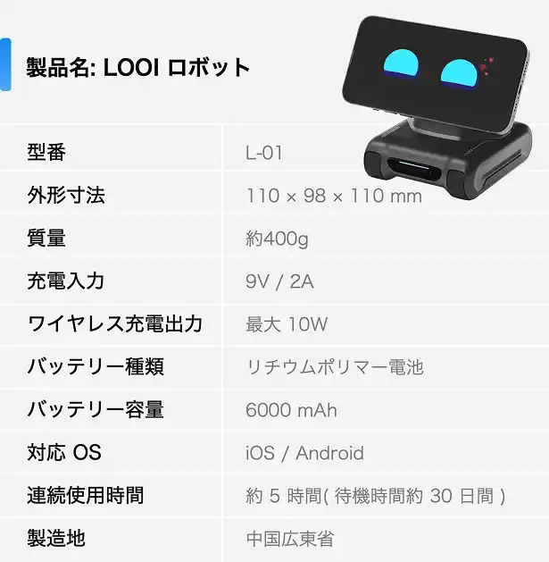 「LOOI(ルーイ)」は、スマートフォンを装着するだけで感情豊かな相棒へと進化させる、次世代AIロボットです。MagSafe等で本体にセットした瞬間、画面には「目」が宿り、ChatGPT連携による自然な対話や感情表現を実現します。 |