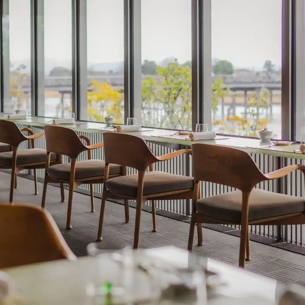 窓から自然光が差し込む開放的な空間を備えるRiverside Cafe MUNIは、朝食、プリフィックスランチ、アフタヌーンティー、フレンチ仕立てのタパスとバブルズドリンクを楽しむライトディナーまで、多彩なシーンに寄り添うオールデイダイニングです。特別な日にも、日常のひとときにも、嵐山の景色とともに心ほぐれる優雅な時間をお過ごしください。 |