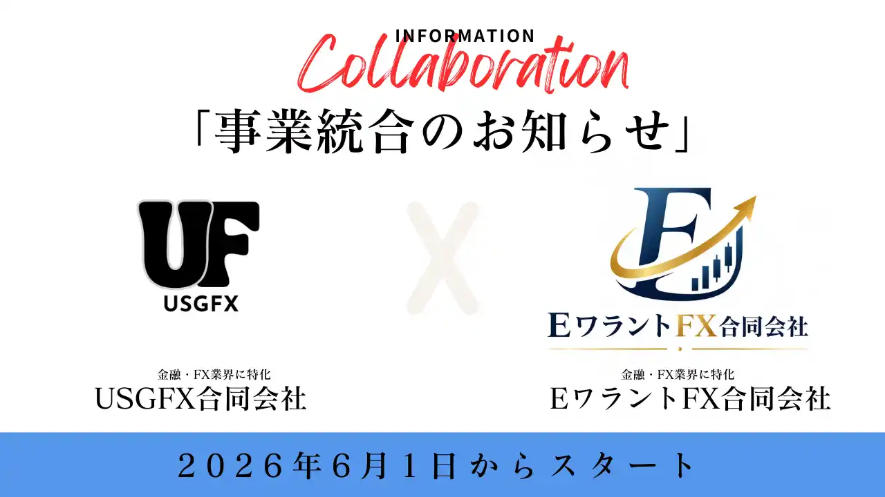 | 項目内容統合実施日2026年6月1日(予定)統合形態USGFX合同会社の全事業をEワラントFX合同会社に承継承継対象事業グローバルFXメディア「グローバルFX」運営、FX業者比較ランキング、専門家へのインタビューコンテンツ、FXツールの受託開発、ホームページ制作・運営、その他関連事業のすべて統合後の事業運営主体EワラントFX合同会社 | |||