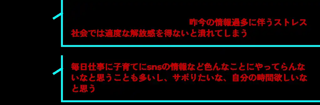 これは、目に見えない息苦しさが続く現代において、生活者が「サボり」を堂々と解禁することで、真面目すぎる自分からの解放や日常に小さな刺激をもたらす時間を求めているという見立てです。 |