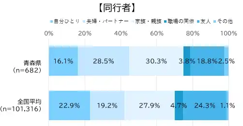 このように、「青森県」に来訪したインバウンドの国籍や同行者の特性を簡単に確認できます。 |