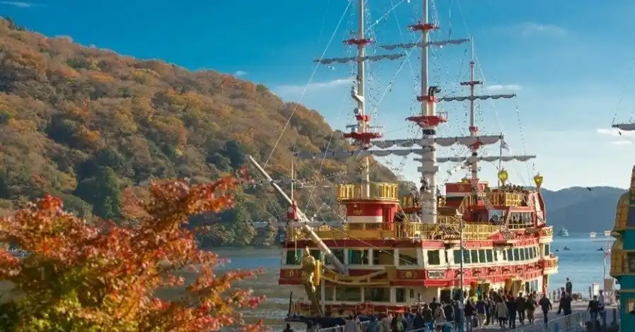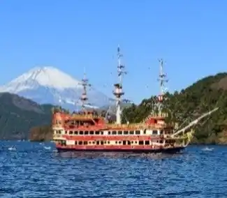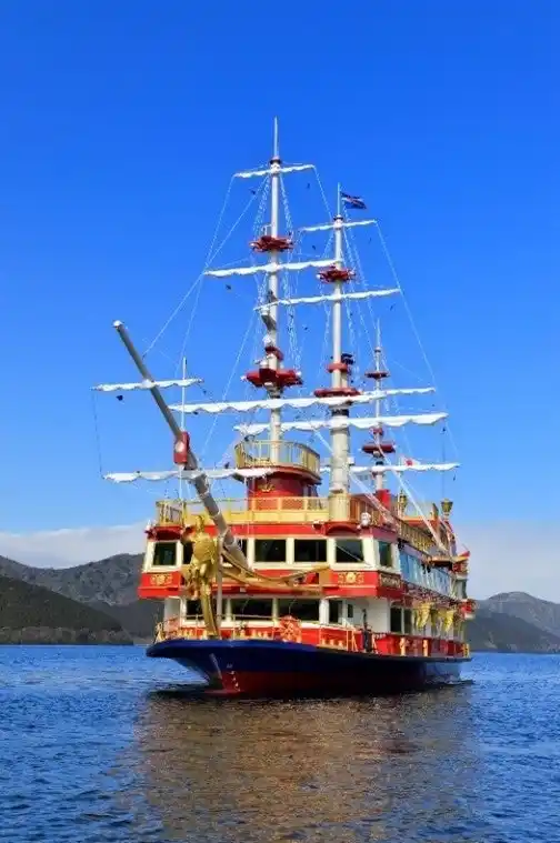 箱根海賊船は桃源台港・箱根町港・元箱根港の3つの港を片道約25分~35分で結びます。海賊船にはクイーン芦ノ湖・ロワイヤルII・ビクトリーの3隻が運航しており、全船がバリアフリーに対応しています。湖上から見る箱根神社や富士山、芦ノ湖の四季折々の景観はひときわ美しく、船内カフェではオリジナルコーヒーや宝箱をイメージしたパイシューなどをご用意し、旅の移動時間にほっとひと息つくカフェタイムをお届けします。 |