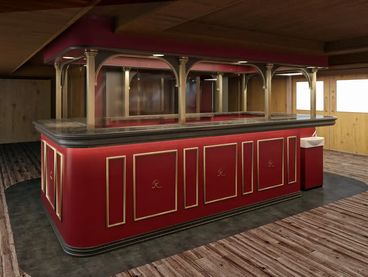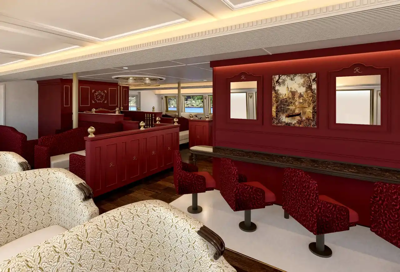 リニューアルを通じて、近世フランスの華やかさと楽しさを感じるワンランク上の特別なクルーズをお届けします。特別船室の基調色は、船体にあわせて現行の白に深みのあるルージュレッドを加え華やかさを演出します。また、「ロワイヤルII」のコンセプトである18世紀のフランスの伝統文化を彷彿とさせるロココ様式特有の優美な曲線を備えた家具や絵画作品を新たに設置するなど、造作にもこだわり抜いた高貴さ溢れる空間へと生まれ変わります。 |
