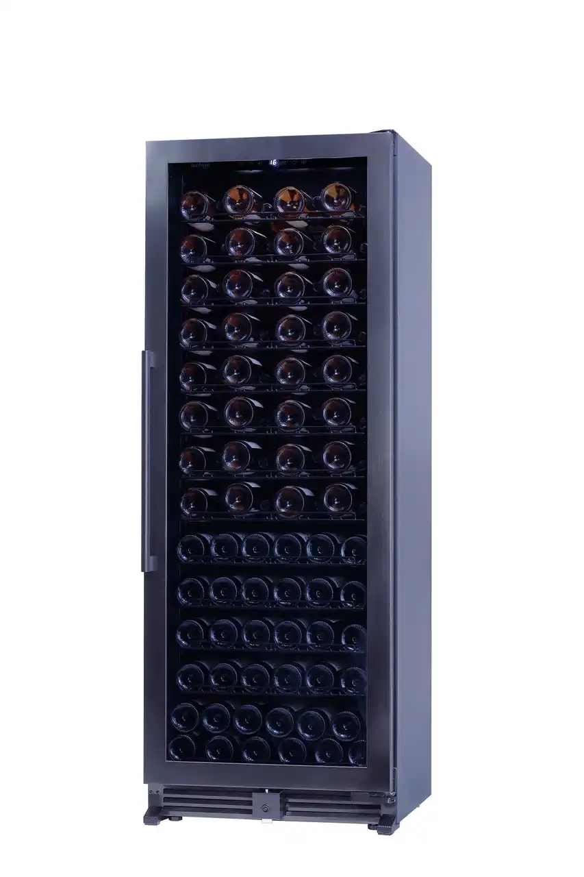 約100本とまとまった本数のワインを1台で管理できるため、提供用ワインのストック保管に適しています。さらに、下段のラックを外してボトルを立てて収納することで、抜栓後のワインを保管しながら、デイリーに提供するワインの管理まで一括で行えます。店舗の運用に応じて柔軟な使い方ができ、スペースに制約がありながらも、多くのワインを管理したい店舗に適したワインセラーです。 |