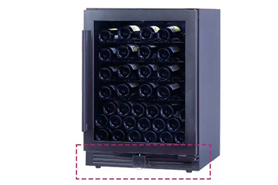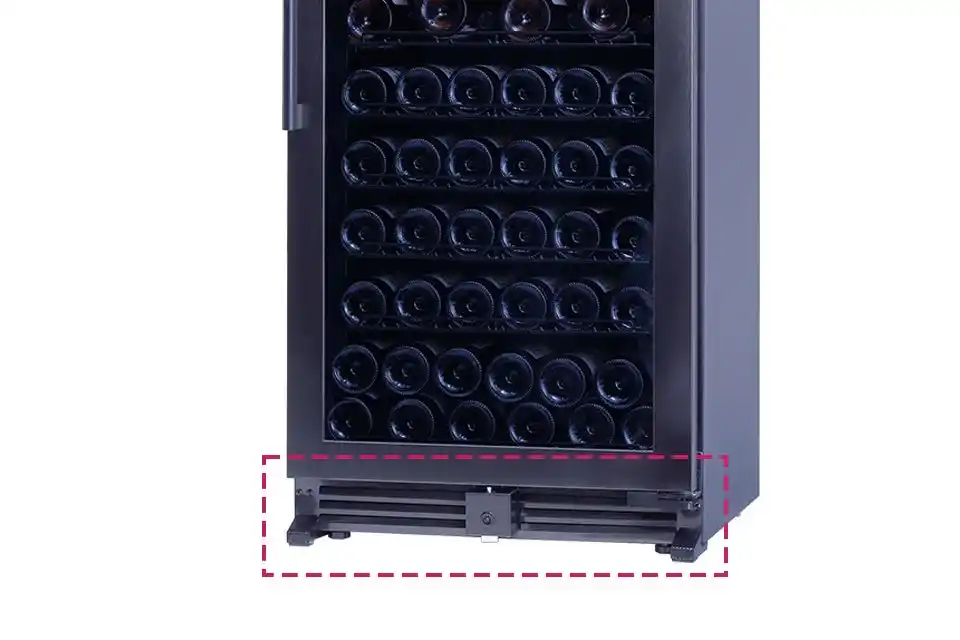 セラー前面下部からコンプレッサーの熱を排気し、外気を取り込む前面給排気構造を採用しています。 そのため背面・側面に必要な放熱スペースは約3cmと小さく、省スペースでの設置が可能です。ビルトインにも対応します。 |