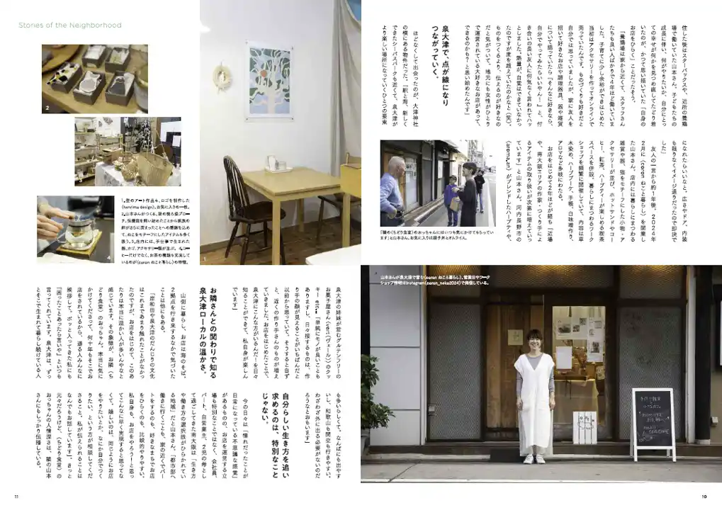 岸和田市に移住し、南海電鉄泉大津駅の近くで生活雑貨店・カフェを営む山本真由珠さんとその家族。写真は『南大阪・和歌山 南海沿線のくらし読本』内のインタビューより。 |
