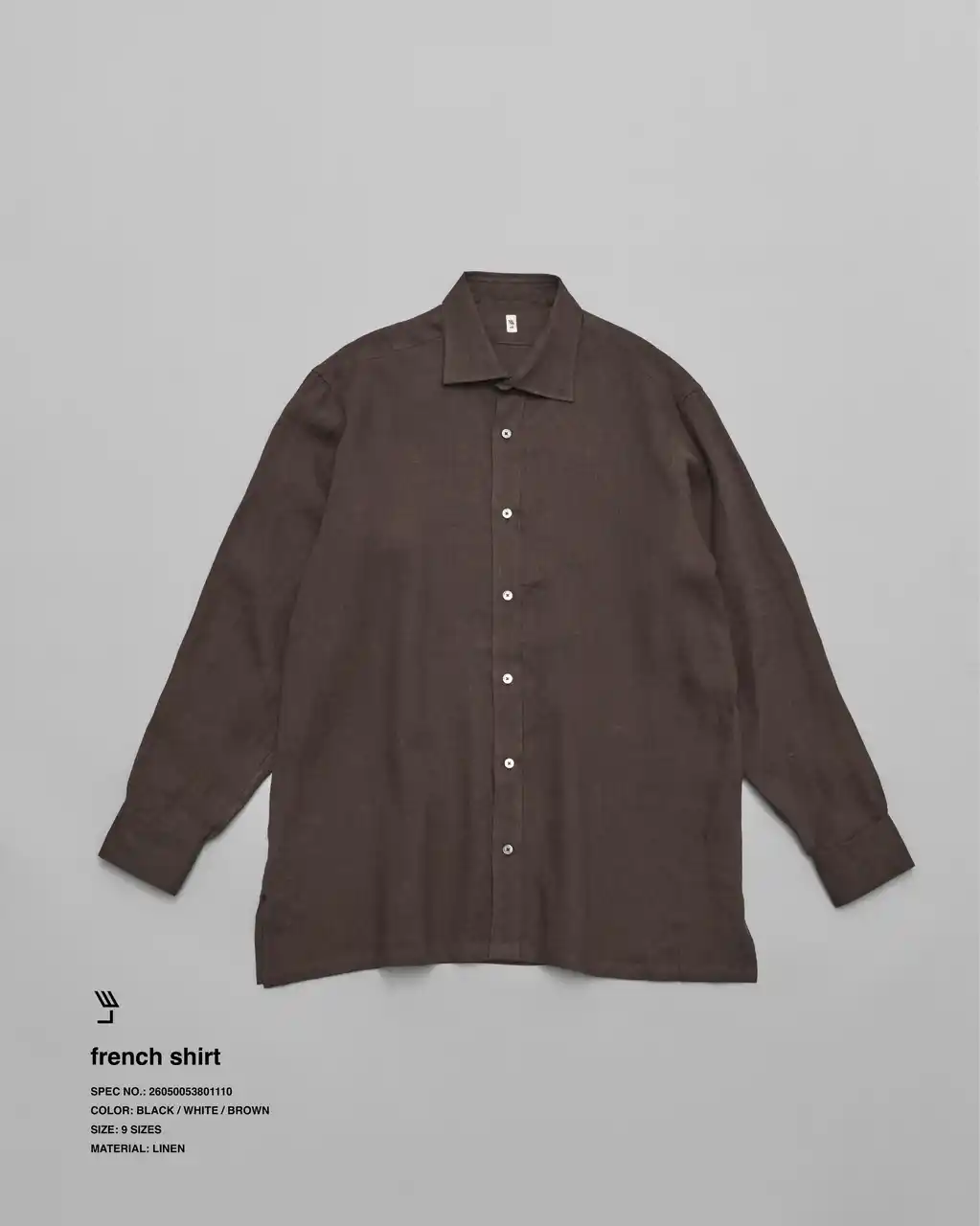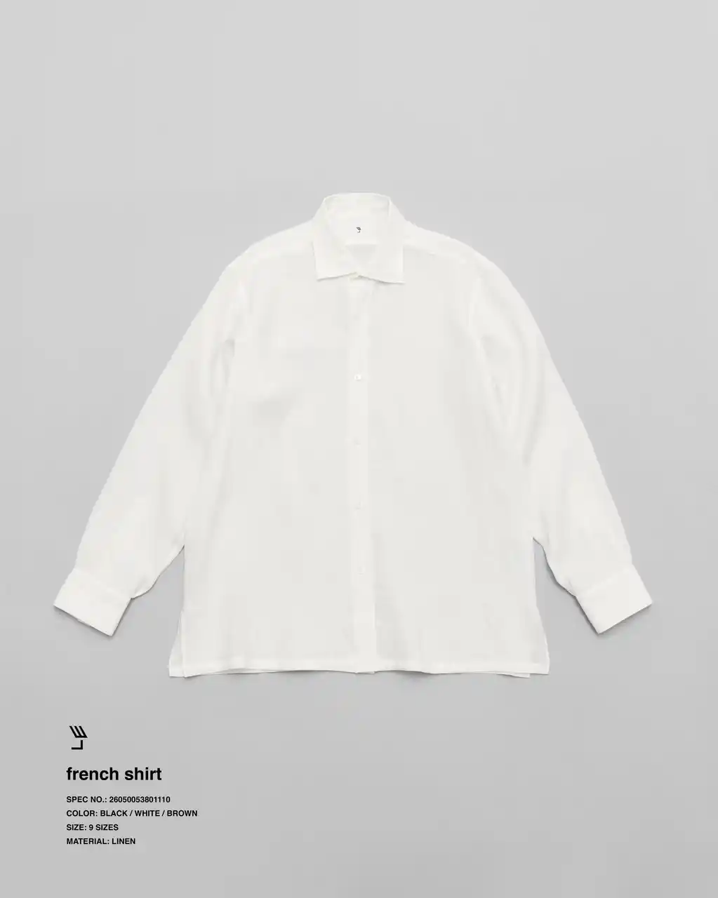 | 今回は、ヨーロッパの王道的なリネンのイメージを出発点に、フランスの正統派トラディショナルシャツの流れを汲みながら、現代的なバランスで再構築しました。 | ||||||||||||||