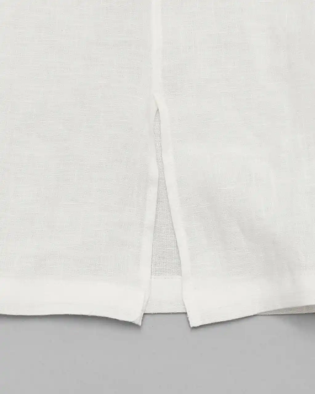| リネン素材でありながら、リゾートウェアのような軽さに寄りすぎず、あくまで街着として成立する一枚を目指しています。 | ||||||||||||||