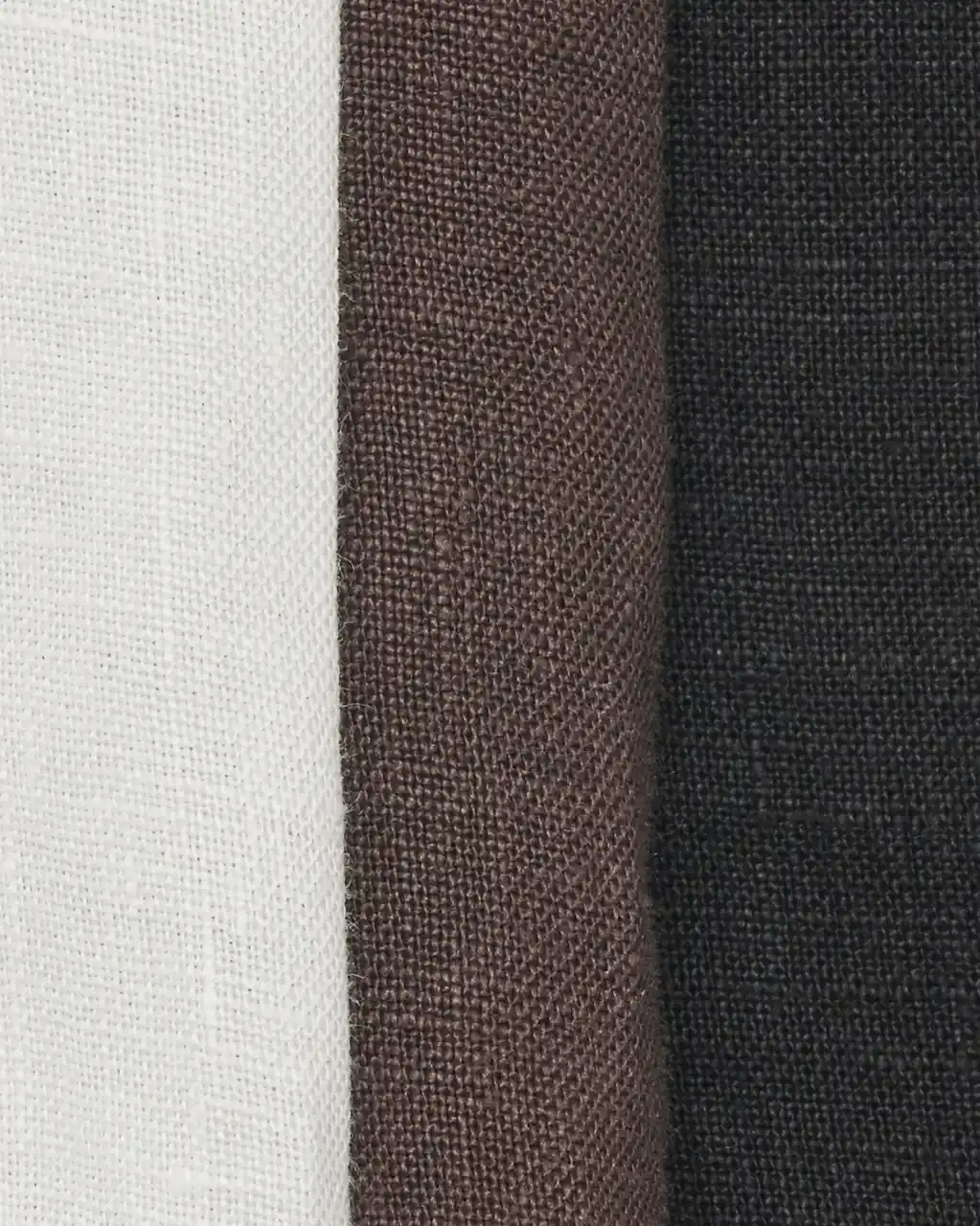 | 生地には、細番手でフラットなドレス生地でもなく、節の強いラフなリネンでもない、その中間に位置する風合いを採用。ほどよい甘さと自然な表情を備えています。 | ||||||||||||||