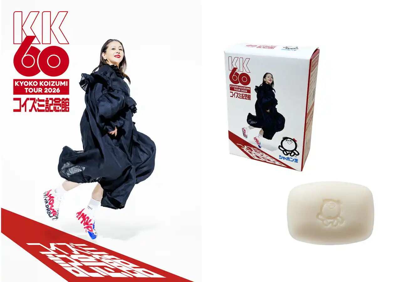 無添加石けんのパイオニアであるシャボン玉石けん株式会社(本社:福岡県北九州市/代表取締役社長 森田隼人)は、歌手・俳優の小泉今日子さんが2026年に開催する、近年では過去最大規模の全国ホールツアー「KK60~コイズミ記念館~ KYOKO KOIZUMI TOUR 2026」へ協賛いたします。2月8日に行われた福岡公演に続き、日本武道館公演(5月2日・3日)および沖縄公演(5月20日)にて「お土産」として無添加石けんを配布いたします。対象公演では、本公演限定の「スペシャルパッケージ仕様・シャボン玉浴用」をご用意しております。 |