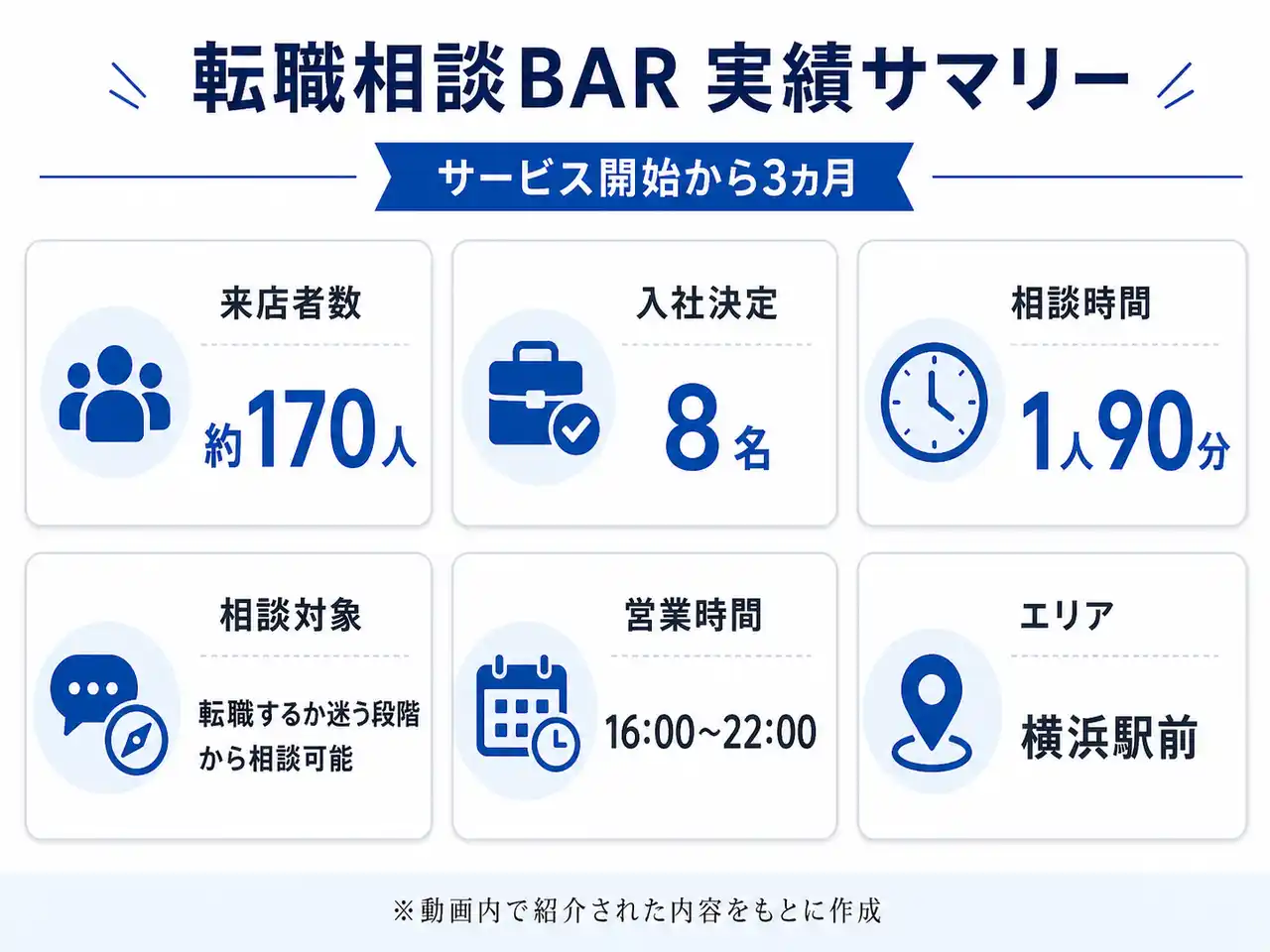 転職相談BARは、コンセプトの面白さだけでなく、事業としての成立感も見え始めています。 |