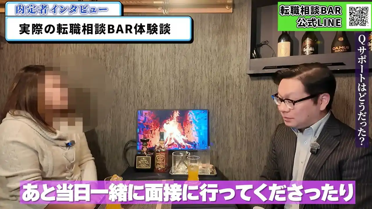 茂木社長との対談動画では、転職相談BARの仕組みや実績、今後の展望について語っている |