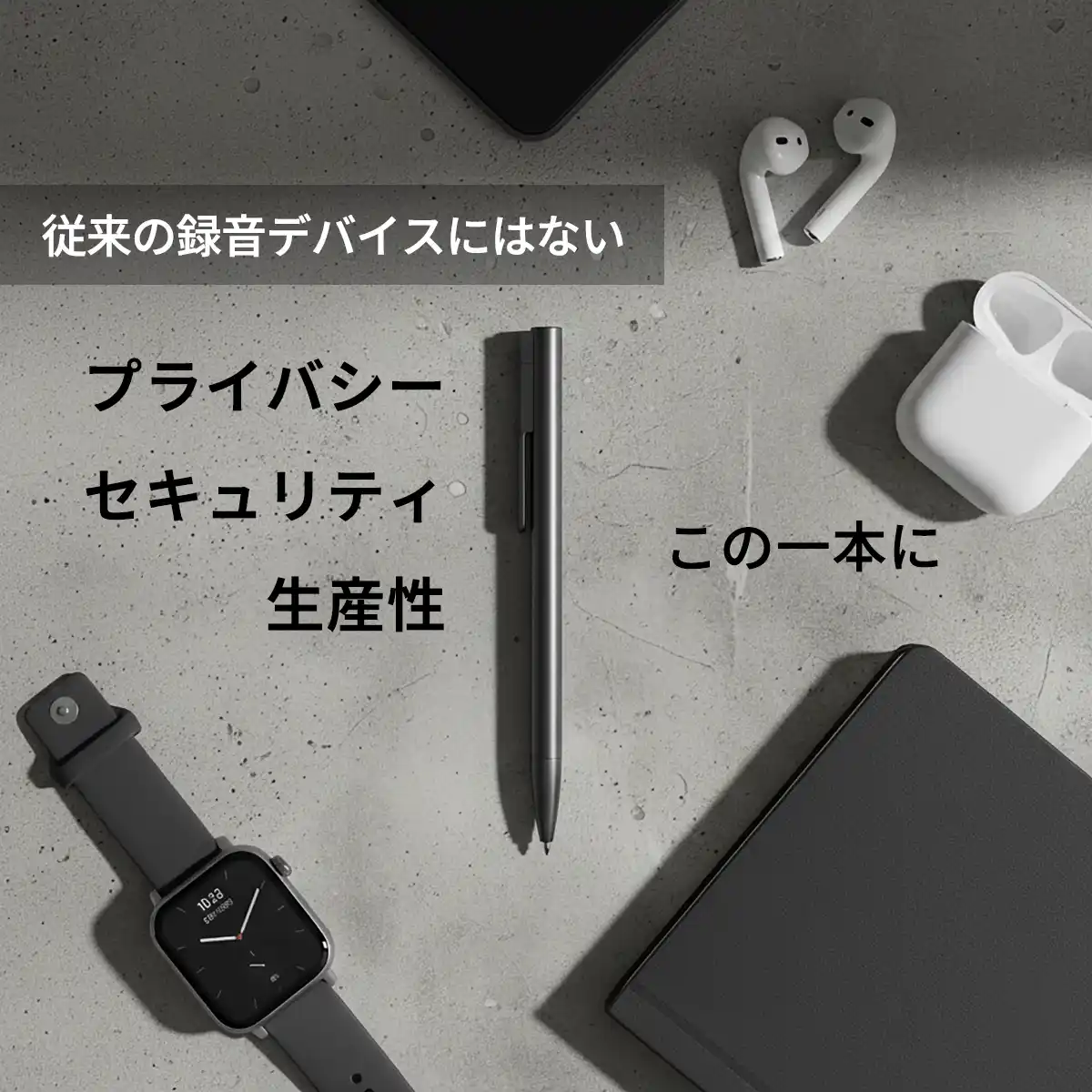 すべての録音データは、インターネットから完全に隔離された機内の128GB大容量ストレージに、暗号化されて直接保存されます。クラウドやネットワークを経由しないため、外部へのデータ流出の心配は一切ありません。安心して1,000時間以上の高音質な録音を保存可能。 |