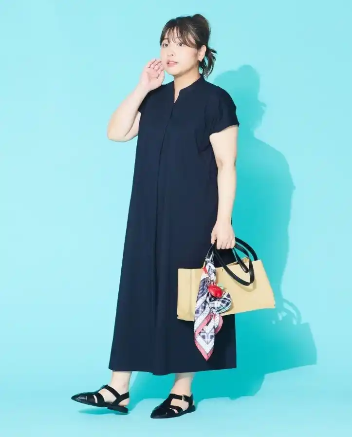 1枚で決まるネイビーワンピースは、吸水速乾と接触冷感機能付きで暑い日も快適。さらっとした着心地で、デイリーからお出かけまで幅広く活躍します。スカーフにチャームを重ねたバッグで彩りを添え、軽快な大人カジュアルスタイルに。 |