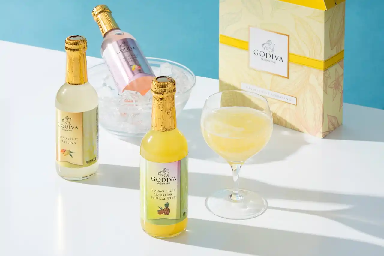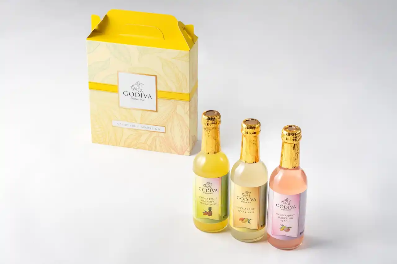 ■商品概要 商品名: 「カカオ フルーツ スパークリング」 「カカオ フルーツ スパークリング ピーチ」 「カカオ フルーツ スパークリング トロピカルフルーツ」 「カカオ フルーツ スパークリング 3本セット」 販売期間: 2026年5月1日(金)~ ※無くなり次第終了 取扱店: 全国のゴディバショップ(https://shop.godiva.co.jp/stores) GODIVA cafe(https://www.godiva.co.jp/cafe/) ゴディバ オンラインショップ(https://www.godiva.co.jp/shop/) 価格(8%税込)/内容量: 「カカオ フルーツ スパークリング」/700円/245ml 「カカオ フルーツ スパークリング ピーチ」/700円/245ml 「カカオ フルーツ スパークリング トロピカルフルーツ」/700円/245ml ※イートインの場合は、10%の消費税がかかります 「カカオ フルーツ スパークリング 3本セット」 2,250円/245ml×3本 |