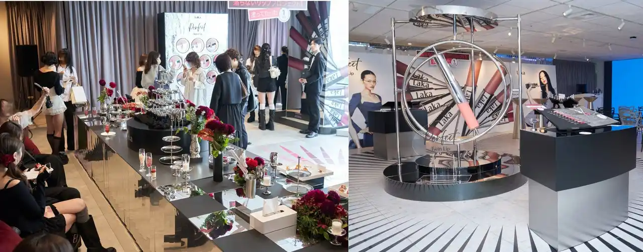 本イベントでは、4月10日からQoo10にて先行発売がスタートし、5月1日にバラエティーショップにて発売を控える『パーフェクトツインリップ』を中心に、Lakaが掲げるメイクへの“自分らしいアティチュードを完成させる”思いをこめた空間を用意しました。イベント内では商品のタッチ&トライだけではなく、メイクアップアーティストによるステージや、華やかなフォトスポットも複数用意。3日間、多数の美容メディアやインフルエンサーにご来場いただき、会場は大いに盛り上がりました。 |
