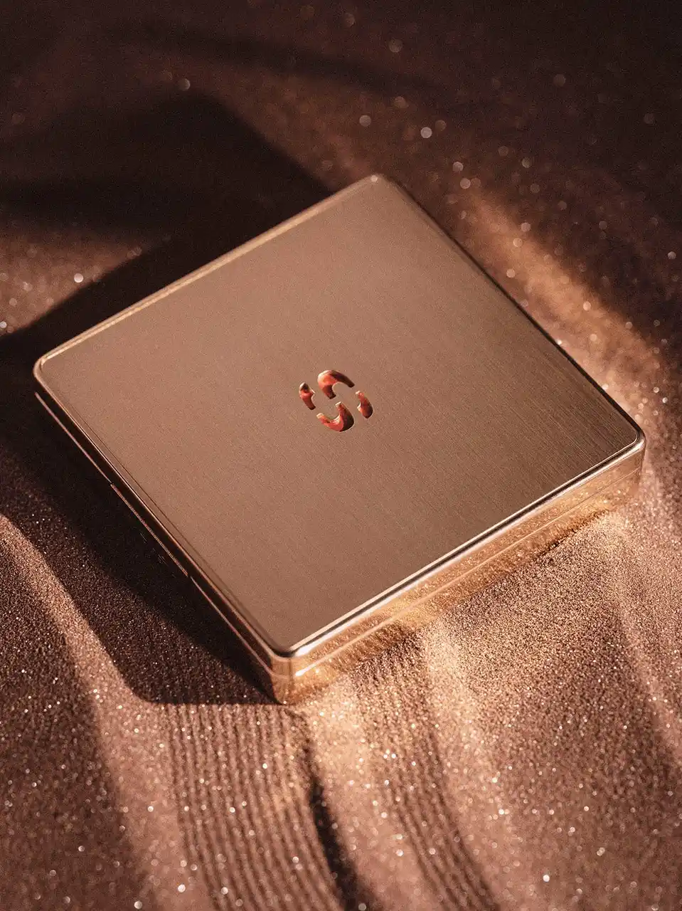 | パウダー表面に施したブランドを象徴するオーキッド(蘭)のエンボスと、蓋の「S」ロゴが輝くマットゴールドのパッケージ。 | ||||||||||||||